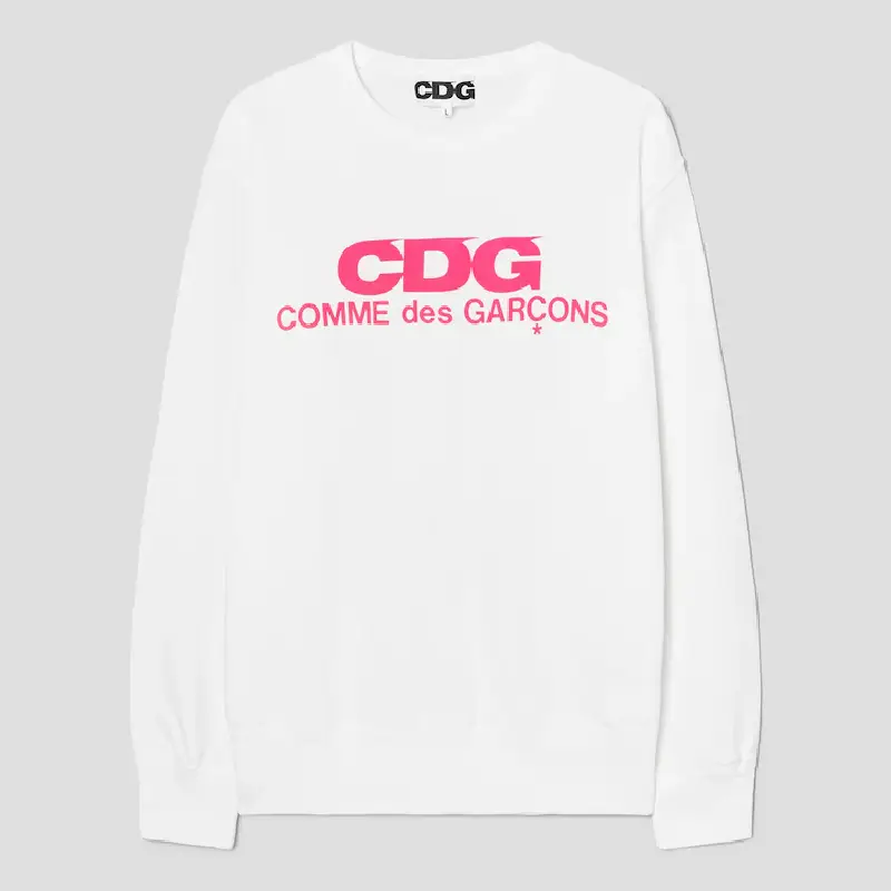 CDG Pink Logo Long Sleeve – White
