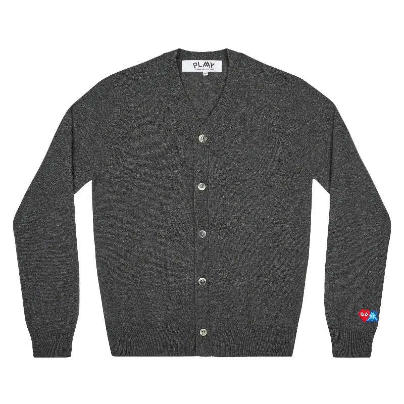 PLAY CDG V-Neck Cardigan Invader Red Heart – Grey