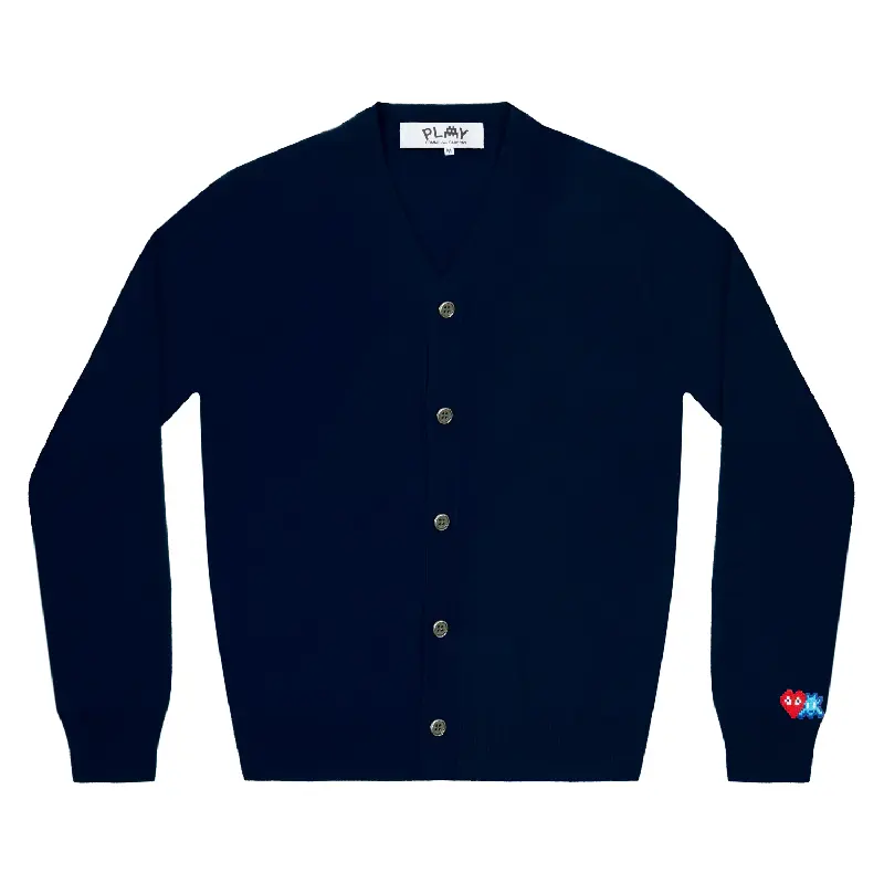 PLAY CDG V-Neck Cardigan Invader Red Heart – Navy